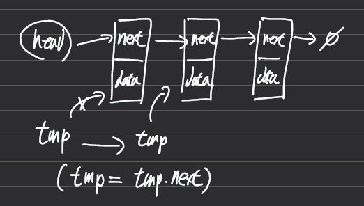 하지만 노드가 너무 많아지면 head.next.next.next를 끝없이 사용할 수 없기 때문에, 임시 포인터를 만들어서 탐색하는 방식을 사용하는데, 다음장부터 구체적으로 어떻게 연결 리스트를 구현하는 방법을 소개한다.
