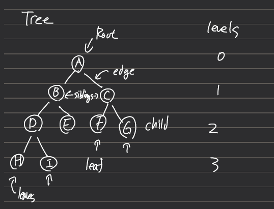 Edge : 두 노드를 연결하는 선. 뿌리로부터 간선의 수로 Level을 정한다.