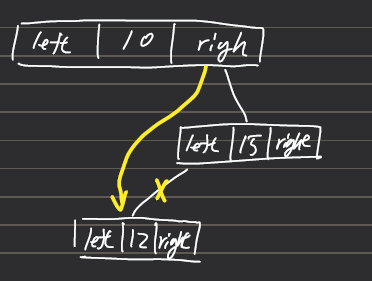트리의 규칙은 힙과는 다른데, 작은 데이터는 왼쪽 자식 노드로, 큰 데이터는 오른쪽 자식 노드에 추가해야 한다.