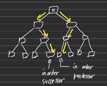 inorder successor : 제거하고자 하는 노드보다 작은 노드 중 가장 큰 노드