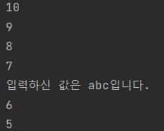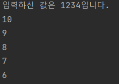 하나의 쓰레드에서 두가지 태스크를 수행합니다. 하나는 사용자에게 값을 입력받고 출력하는 것이고, 또 하나는 10부터 1까지 순차적으로 값을 출력하는 것입니다.